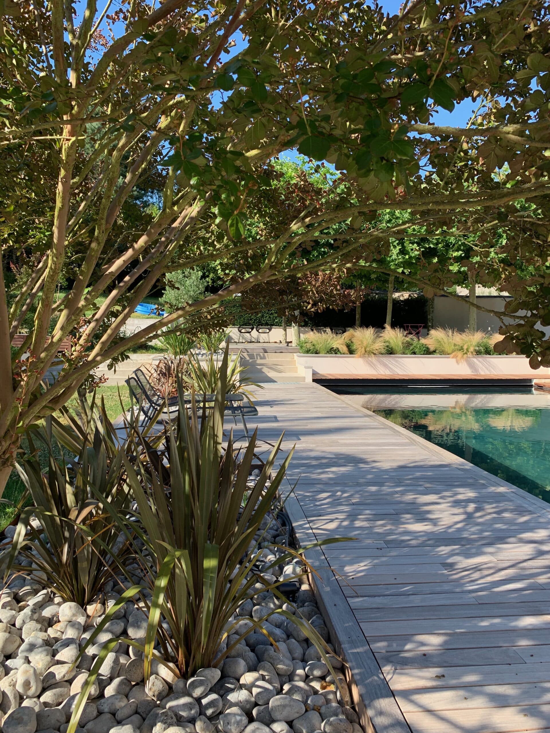 Matériaux nobles (bois d’essence, schiste, acier corten), végétaux graphiques et vivaces, coordination d’artisans partenaires… Chaque détail est pensé pour composer une ambiance unique. Ses réalisations s’étendent de Lyon à Paris, en passant par le Sud de la France, témoignant d’une reconnaissance qui dépasse les frontières régionales.